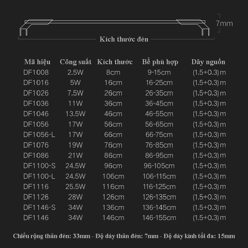 - Chỉ số hoàn màu cao, quang phổ đầy đủ, phù hợp với hầu hết các loại cá cảnh và cây thủy sinh.