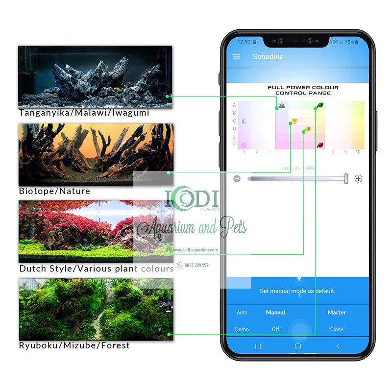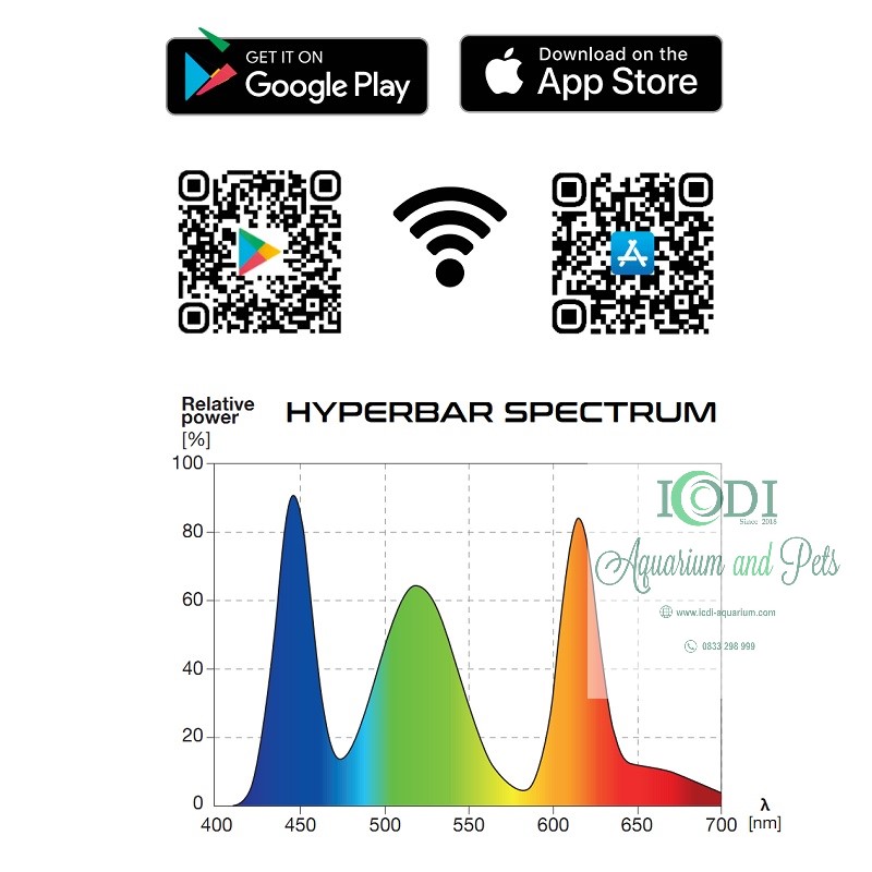 - Nhờ bộ điều khiển WiFi tích hợp, đèn dòng Hyperbar F cho phép bạn điều chỉnh cường độ ánh sáng phù hợp với nhu cầu hiện tại của mình qua ứng dụng SL Control, bao gồm cả cài đặt ánh sáng bình minh - hoàng hôn.